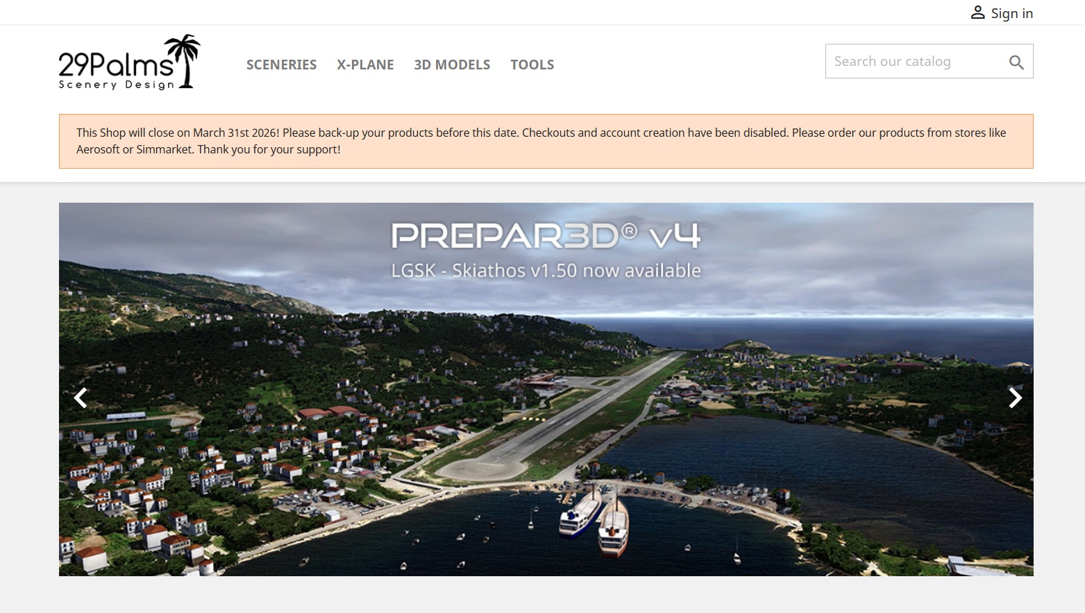 All current products offered on the store (FSX and Prepar3D only) have reached the end of their life cycle, meaning that no new updates, fixes or additional releases will be provided. After March 31st, 2026, the store will no longer be accessible, and customer accounts will be deactivated; no further downloads of purchased products will be possible.