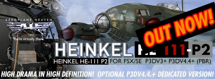 The aircraft is available to buy in one of three packs. You can choose either the FSX/P3D1-3 version for $29.95, the P3D4.4+ version for $29.95, or finally, if you own all the simulators, you can buy the “Heinkel Bundle” which includes all versions for $36.95. Right now the product is only available via the Aeroplane Heaven store, but will be made to PC Aviator, JustFlight and FS Pilotshop shortly.