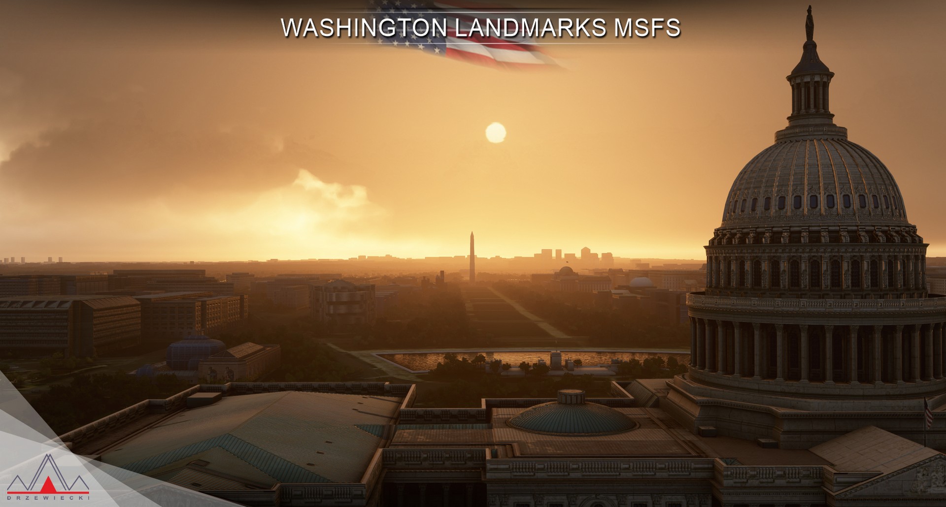 Announced only a few days ago, Drzewiecki Design has today released Washington Landmarks for Microsoft Flight Simulator. The new product features over 1500 custom made buildings for the city of Washington D.C. in the United States to replace the default auto-generated ones in the new flight simulator.