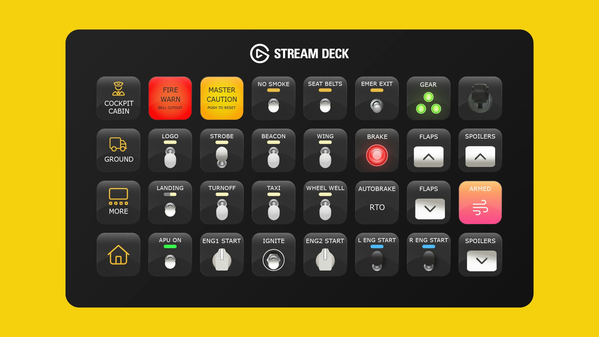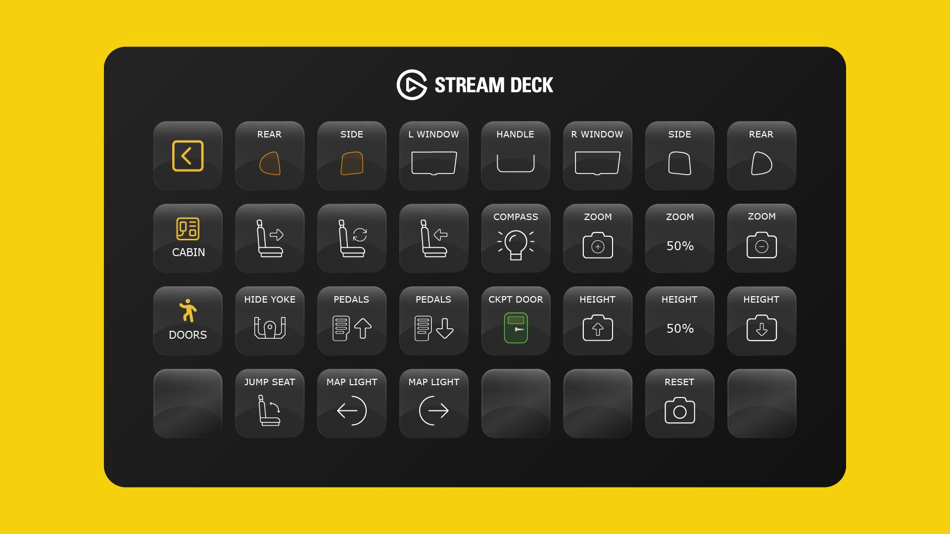 Camera shortcuts and walk-around interactions are included as well, giving users an easy way to move around the aircraft or control exterior features directly from the Stream Deck.