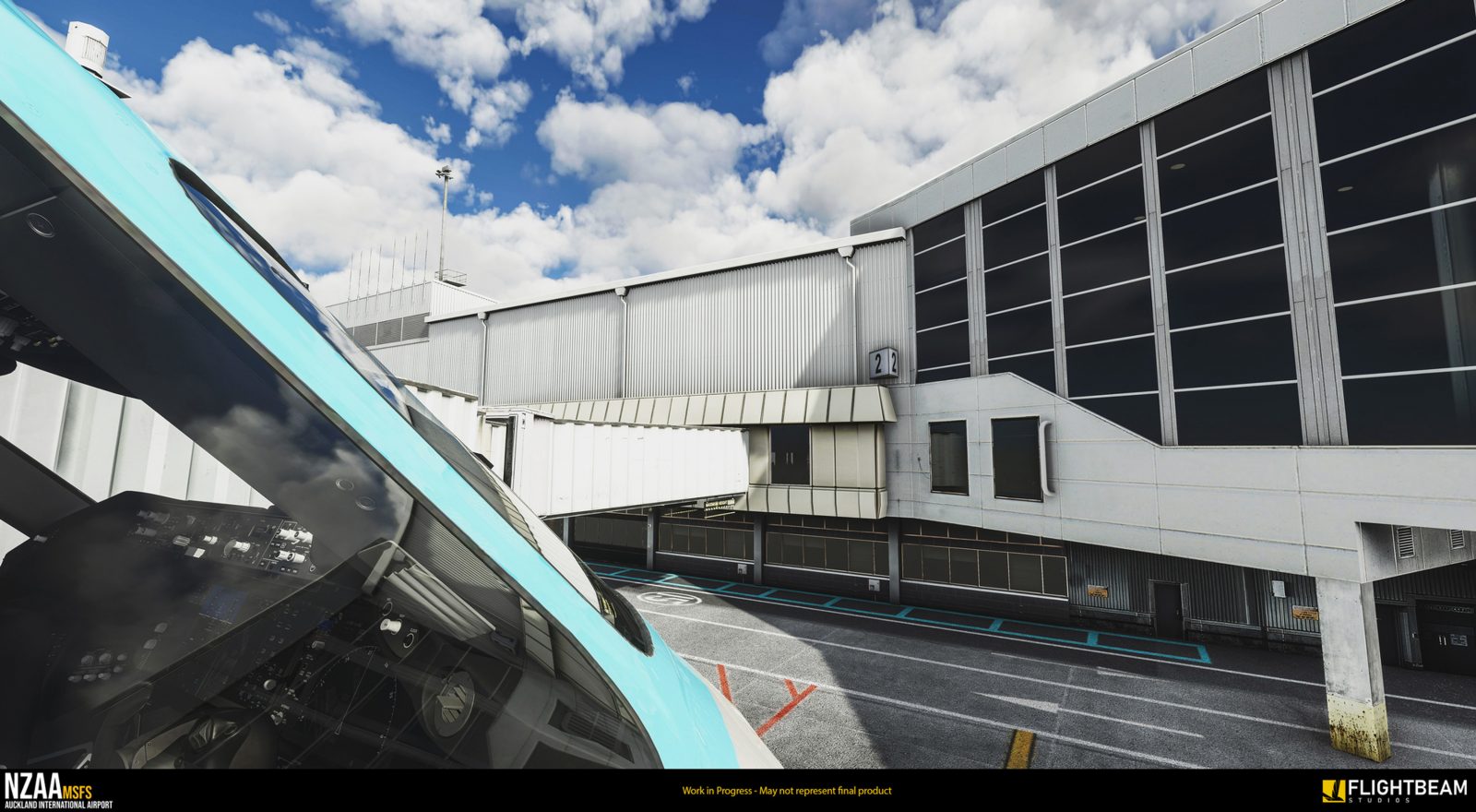 After showing some previews of Wellington last week, Flightbeam is back with showing previews of Auckland Airport (NZAA) in MSFS this time. The previews show the airport up close from an airplane cockpit on the airside, but also the landside of the terminal is shown. The previews also show some of the terrain details that we might come to expect with the scenery.