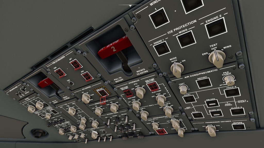 - Custom system pages (STATUS, ANTI ICE, ECS, ELEC, FLTCTRL, FUEL, HYDR, ENGINE, CONFIG)