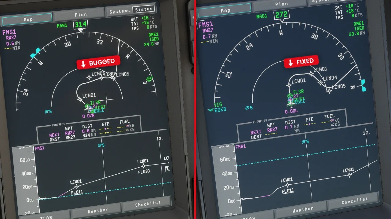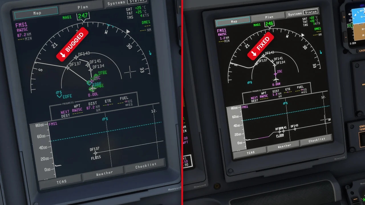 A major undertaking has been integrating Navigraph into the new MCDU; this is intended to solve problems stemming from Microsoft Flight Simulator default navigation data errors, but the complexity of its integration has slowed down overall bug-fix progress.