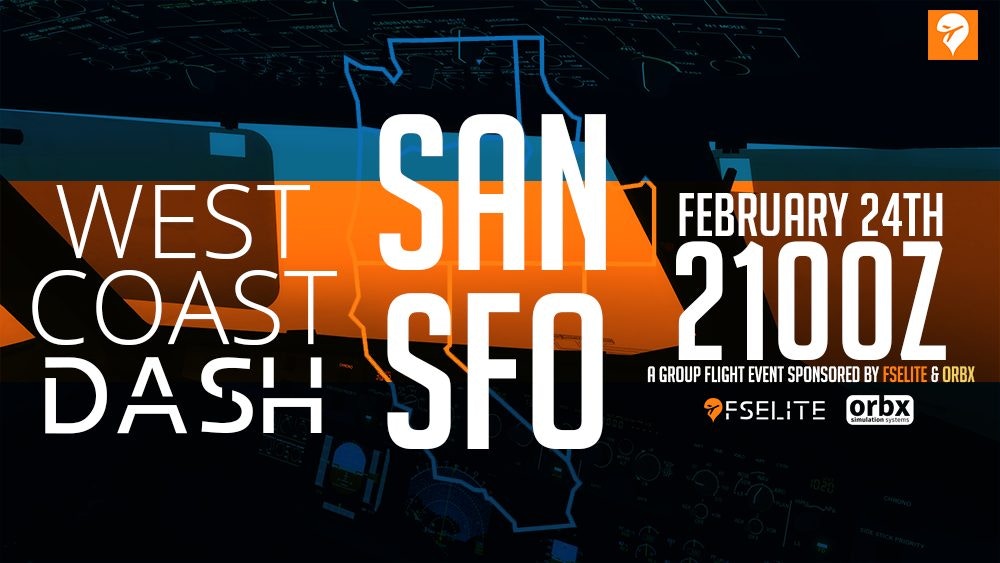 At the beginning of the month, we announced our upcoming event: West Coast Dash. The event will take place February 24th 2018 @ 2100z between San Diego and San Francisco. It’s shaping to be an exciting event with many people attending. To help entice even more of you to join us, we’ve teamed up with Orbx to offer discount on their San Diego (KSAN) scenery!