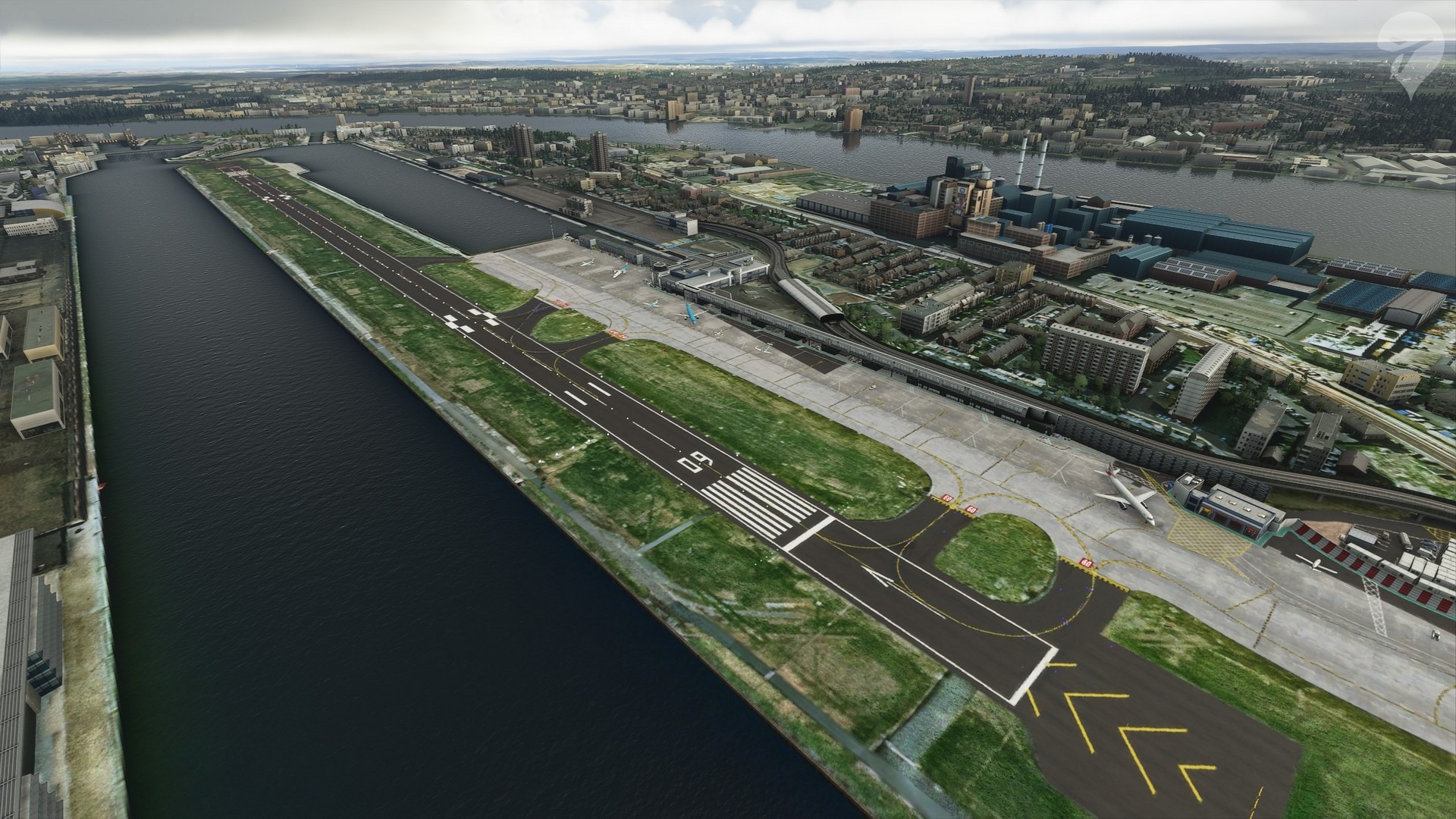 Our first set of previews cover London City Airport (EGLC). Perhaps one of the more interesting airports for it is sat in the heart of one of the busiest cities in the world. Included with the scenery is a range of very detailed and rich custom ground textures and advanced dynamic lighting. There is also a range of custom 3D static models for a variety of aircraft including the Dash 8 Q400 and British Airways’ E170.