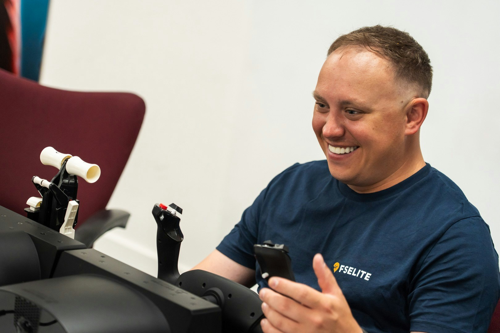 During the session for FSElite, the three of us (Jordan, Greg and I) were sent to different stations to try out the products. Each of us had a rep from the team talking us through the products. To begin my session, I went hands-on with the Foxtrot Aviation Stick.