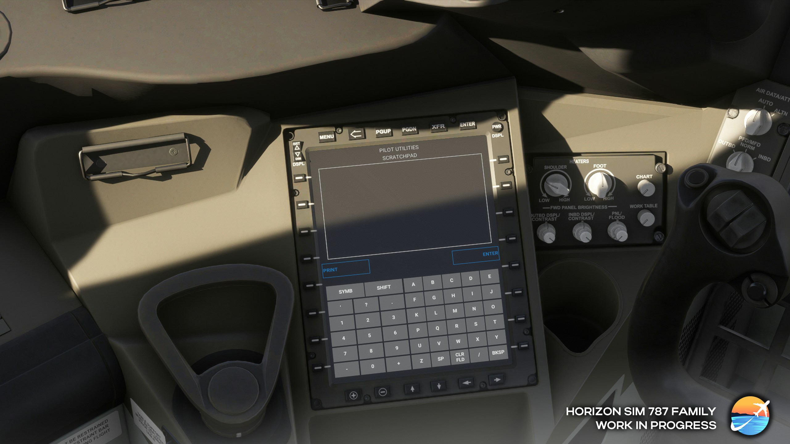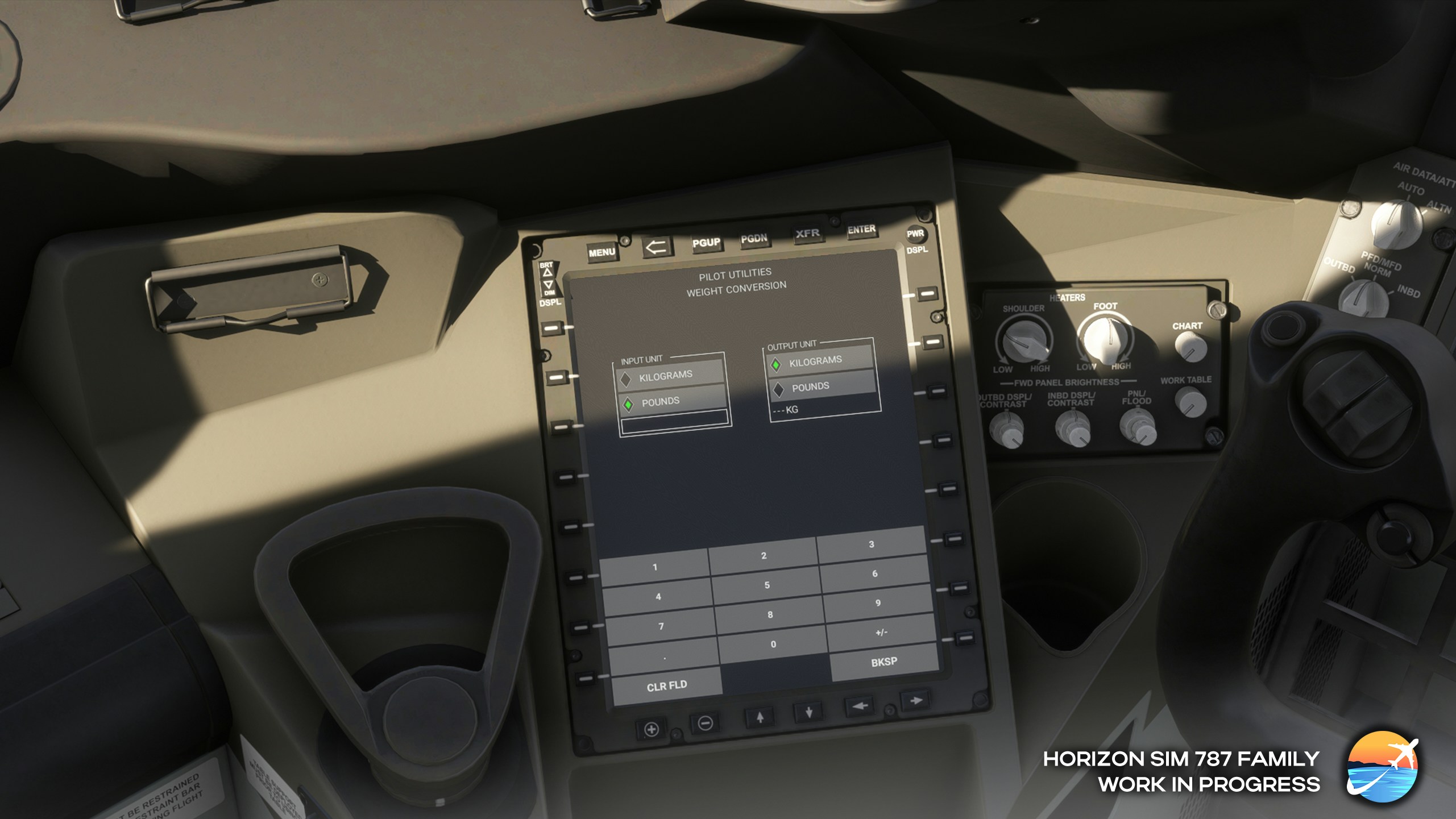 Version 2 of the Horizon Simulation’s Boeing 787 will offer a significant UI and feature update compared to the default MSFS 787 EFB. Currently, the team has implemented a “Pilot Utilities” menu, which includes a calculator, timer, scratchpad, converters for fuel consumption, and more. The team has also implemented a fully functional on-screen keyboard that adapts depending on the type of information you need to input into the EFB. Finally, the new EFB will feature GSX integration, preventing the need to use the separate handlebar menu.
