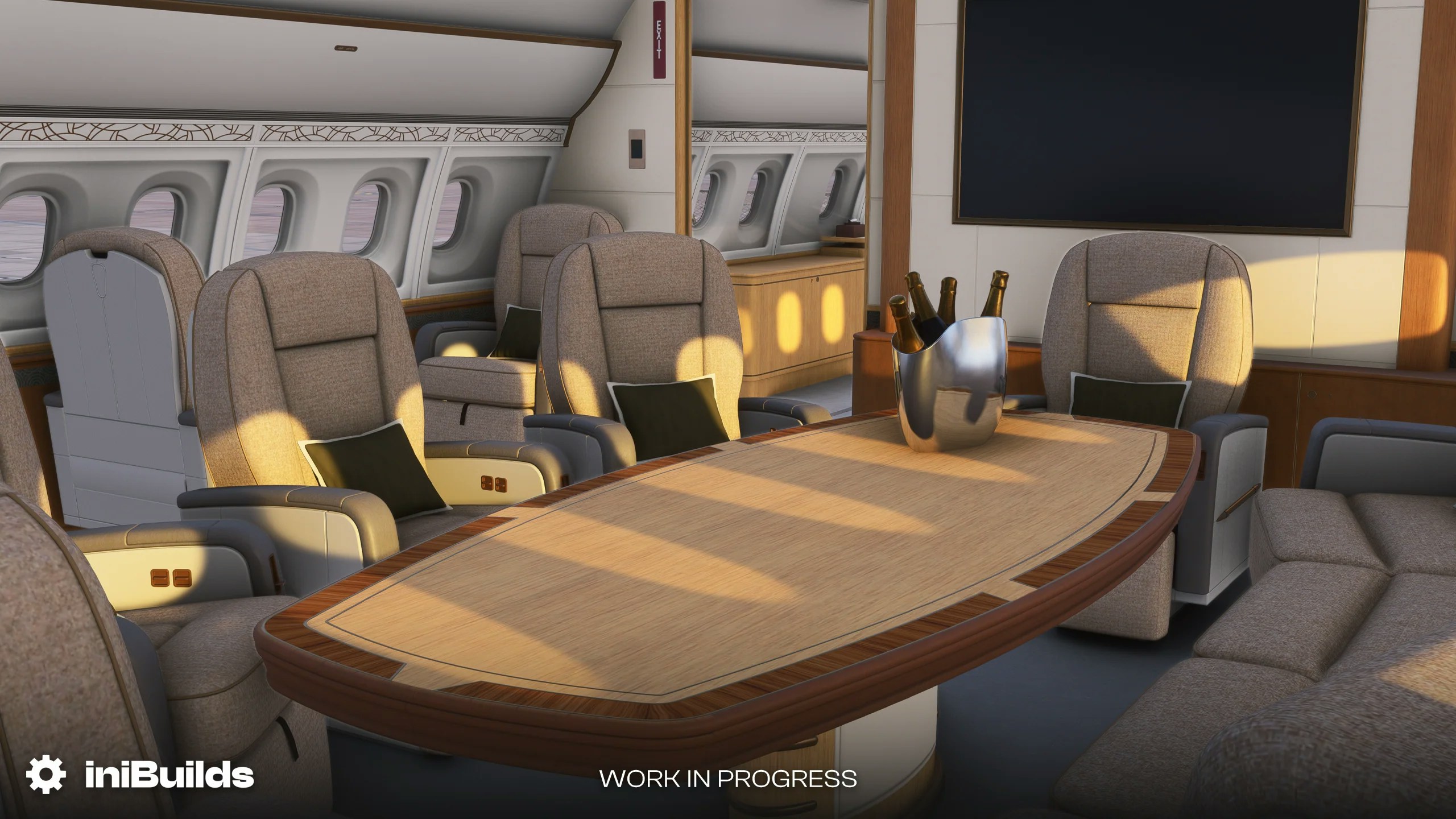 To start, the A340-300 will receive a free update, which will include a VIP variant to the suite of included types in the package. The current time frame from iniBuilds is that the VIP variant will arrive in January 2026 – just a few weeks away. Some previews were shared from the team, highlighting the cabin.