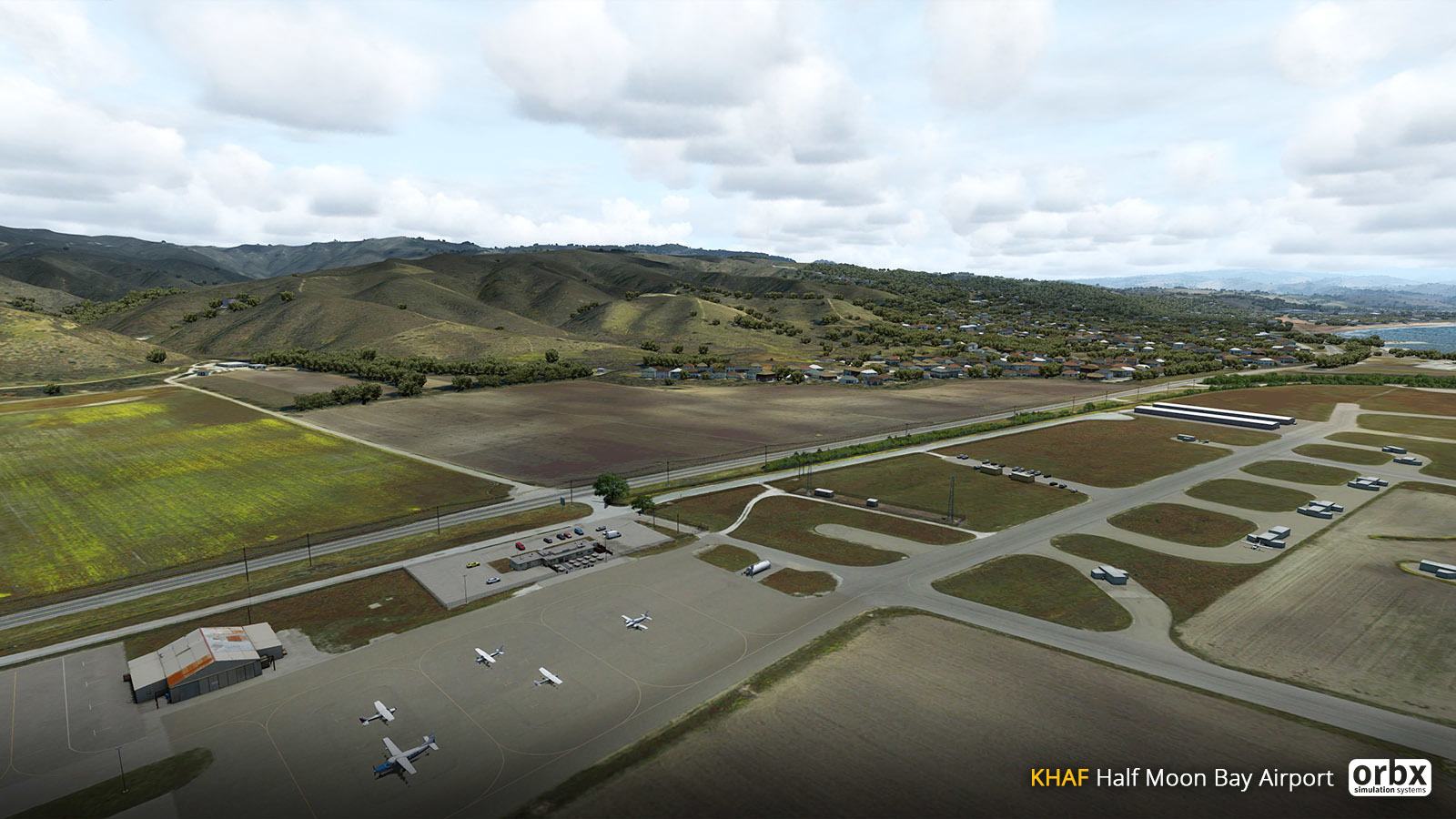 Half Moon Bay is located on the Pacific Coast in San Mateo, which is just south of San Francisco. Being close to the bay, there’s a lot of GA traffic as well as some air taxi services. The airport itself has been created using imagery taken by both Scott and Misha over the past few years to create a truly authentic experience. Further destinations to the GA airport could include many of the other Orbx produced fields including KSTS Sonoma County, KMRY Monterey and KSQL San Carlos.