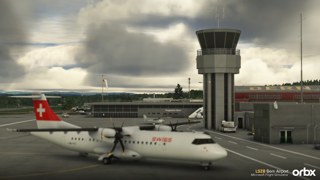 Serving the capital city of Switzerland is Bern Airport, or ‘Regional Aerodrome Bern-Belp‘ (LSZB) as it is officially called. It’s also the destination of Orbx’s latest release. The airport only serves a number of regional airlines with mostly holiday destinations. It’s also a base for the air transport service of the Swiss Air Force, as well as a base for the Rega air rescue organisation, who operates their Eurocopter from there.