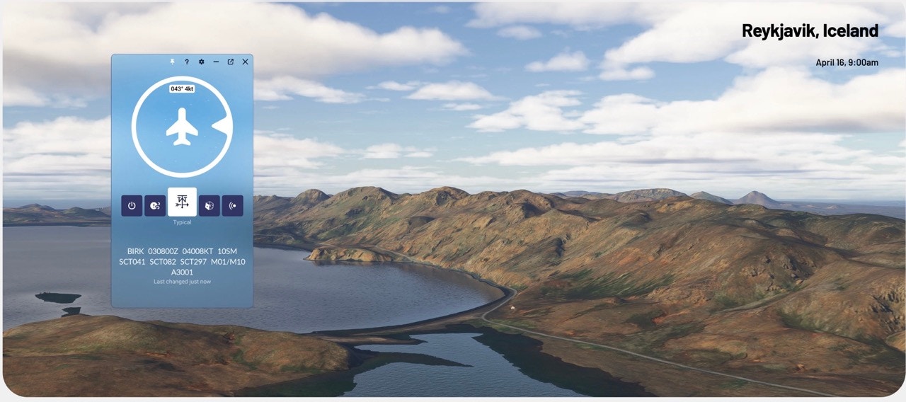 The standard feature, Typical Weather, gives you detailed METAR data, wind and gust visualisation, and a way to sync for multiplayer sessions. You can choose between static weather or more dynamic weather as you fly along your route.