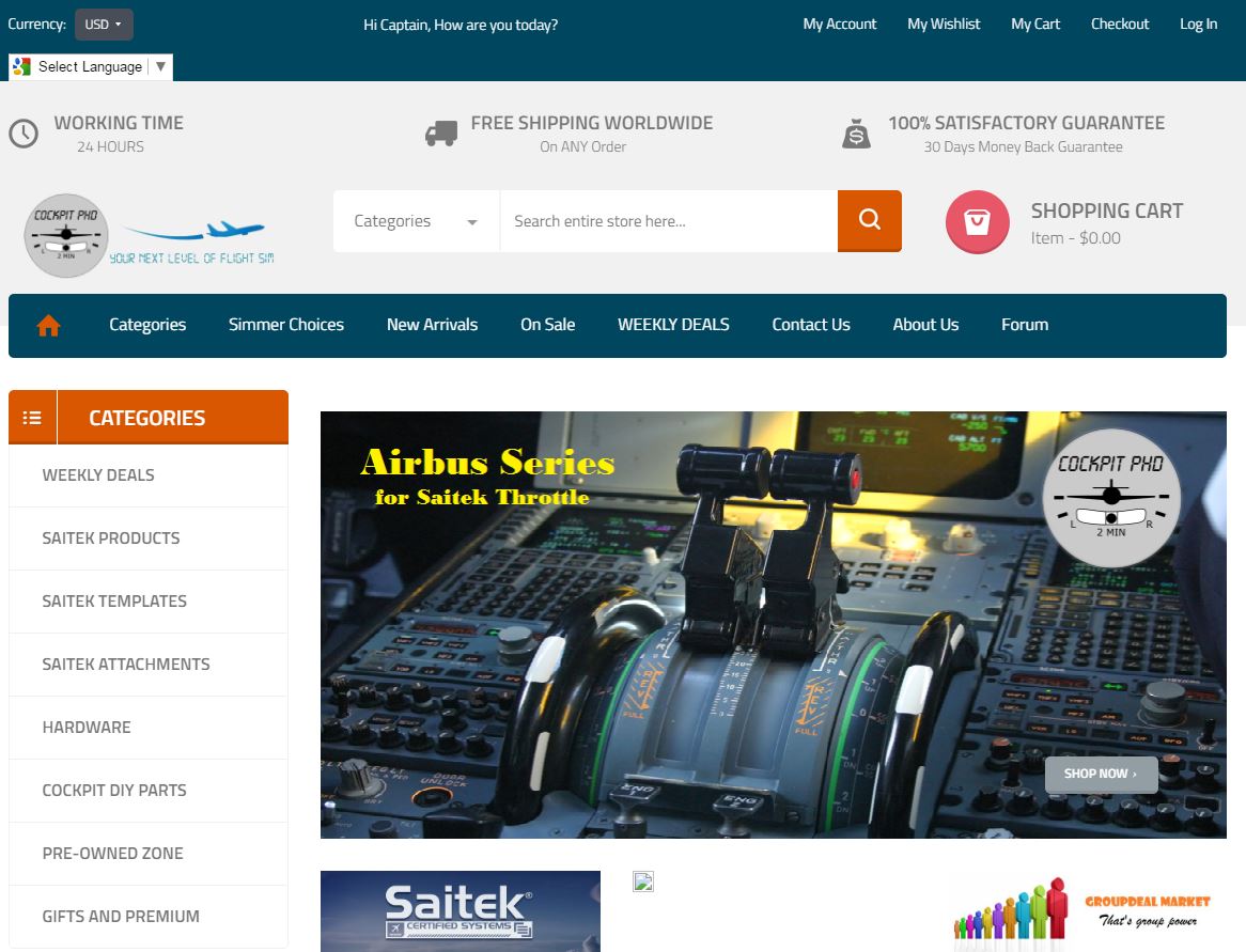 Cockpit PHD offers great products at low prices for primarily for Saitek products, enabling you to custom design to further enhance your Flight Sim experience. They offer 24 hour service, free worldwide shipping and a 30-day money back guarantee.