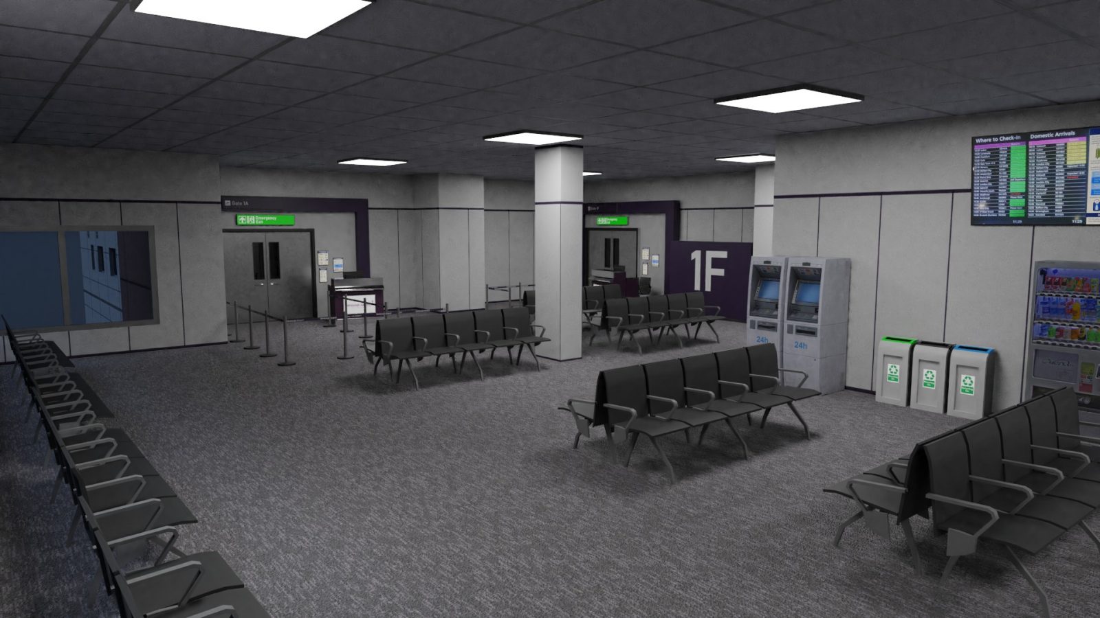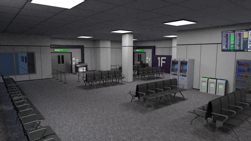 - Completely modeled terminal interior with executive lounges
