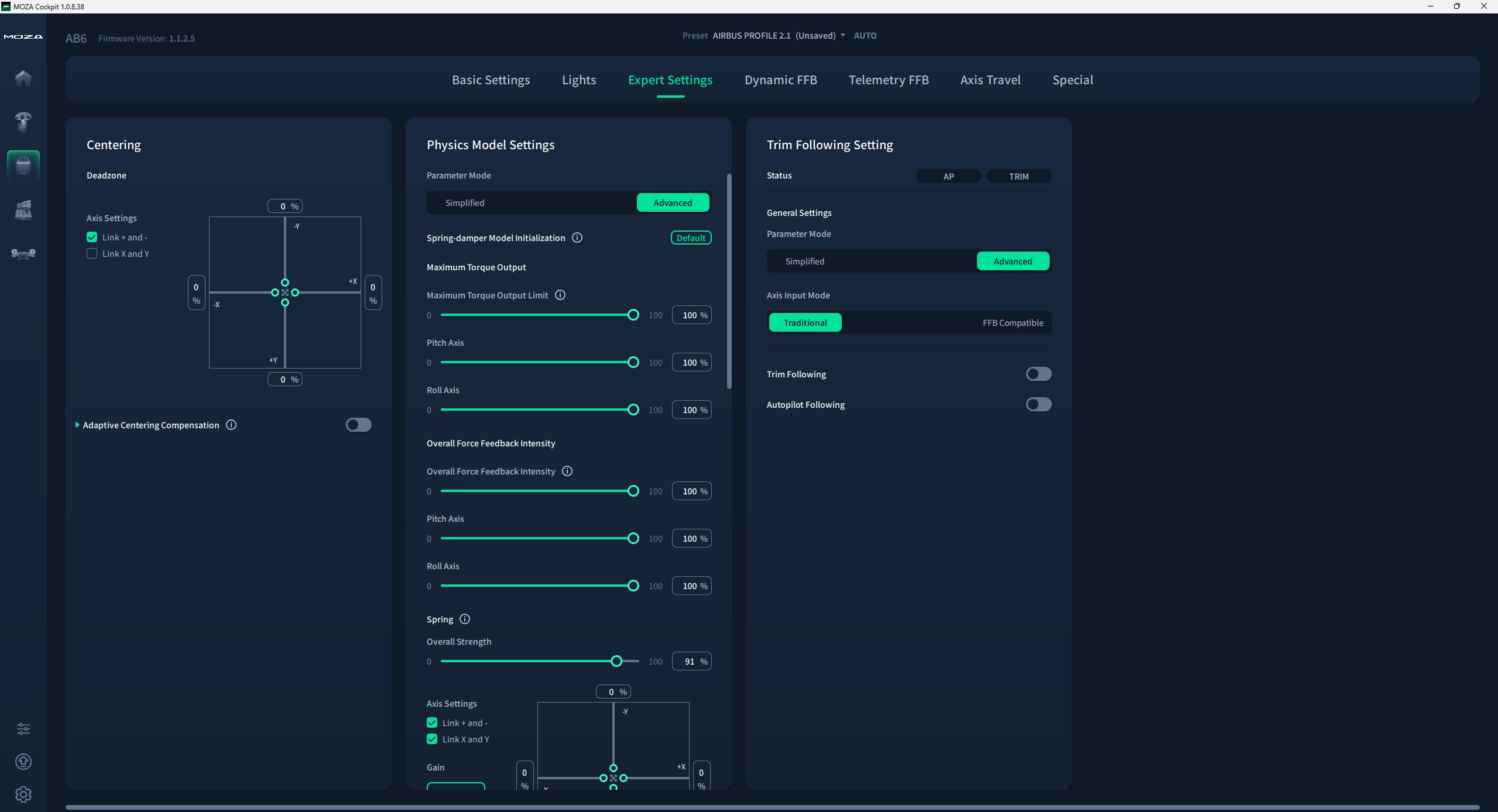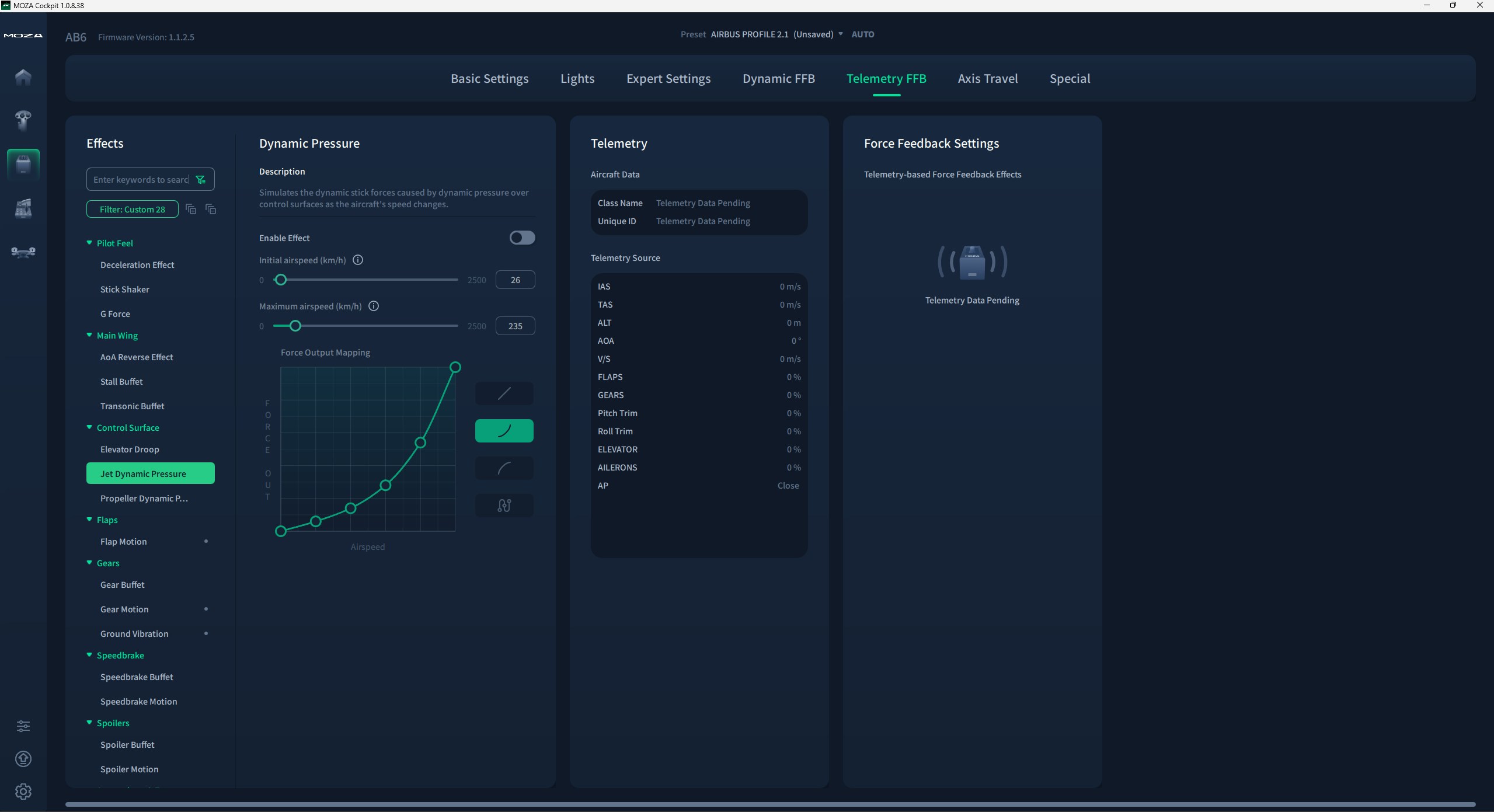 On the other hand, DCS has a native force feedback engine, but the depth of FFB simulation varies widely depending on what an aircraft’s developer chose to simulate. To level out the field, Moza Cockpit gives you the option to leverage both the native FFB engine and telemetry-based effects to add depth to modules.