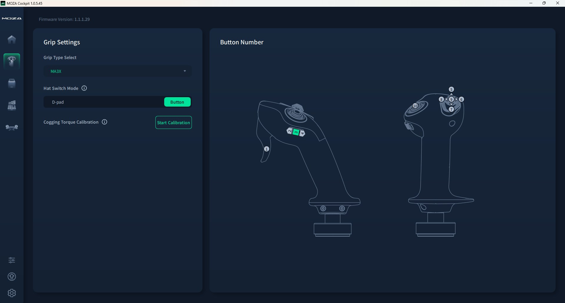 Notably, the AB9 Base also features four RJ ports labelled ‘Dev’, which MOZA indicates can be used to connect upcoming peripherals in their expanding hardware ecosystem. Once connected, the base and stick are managed through the MOZA Cockpit software, which can be downloaded directly from the MOZA website.