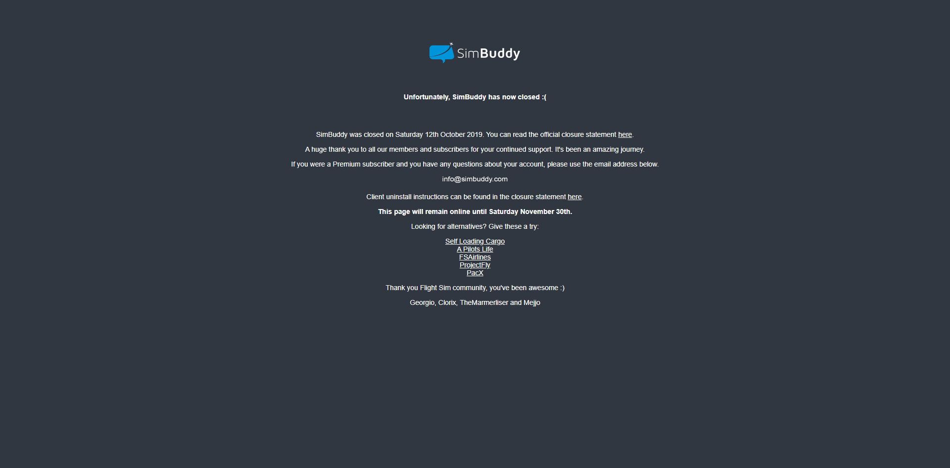 “SimBuddy was closed on Saturday 12th October 2019. You can read the official closure statement here.