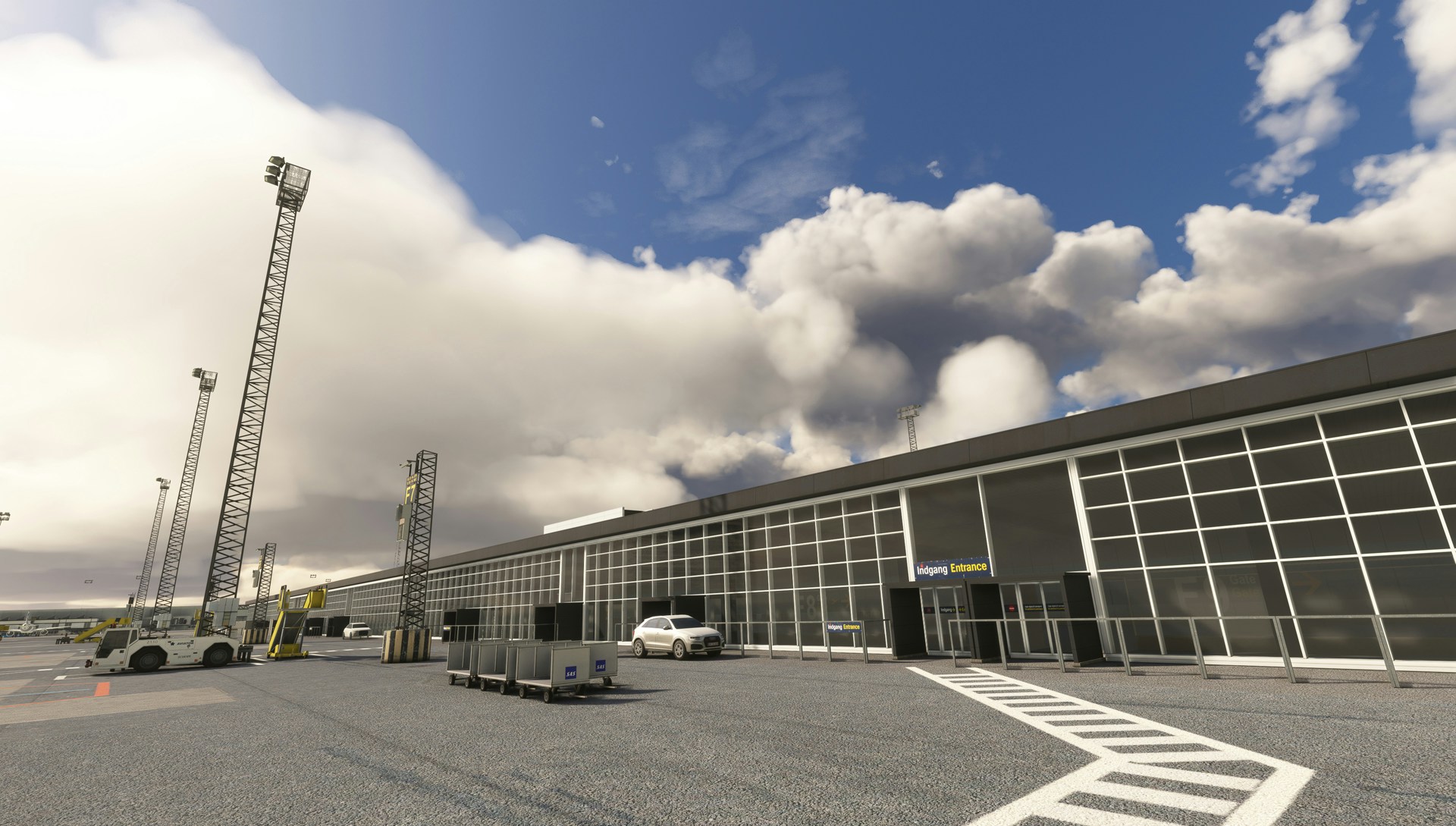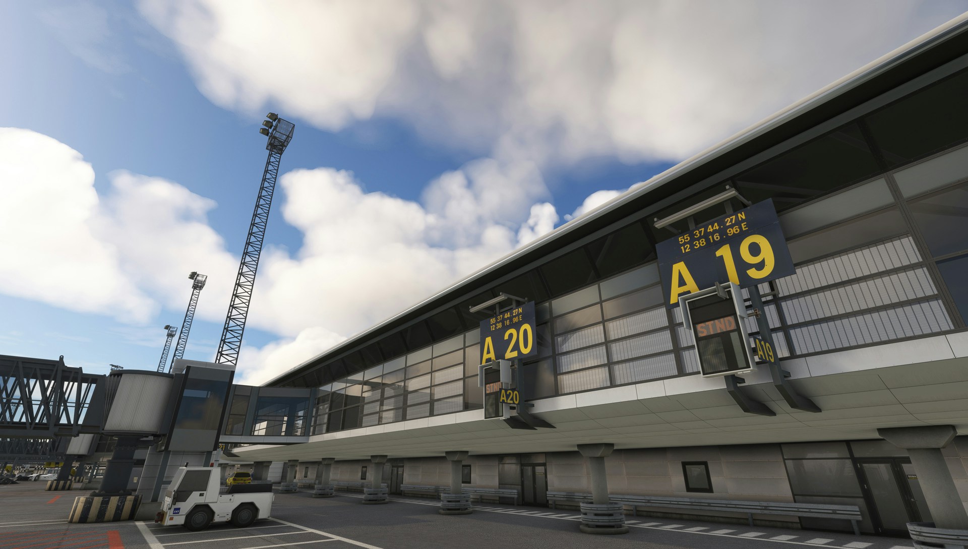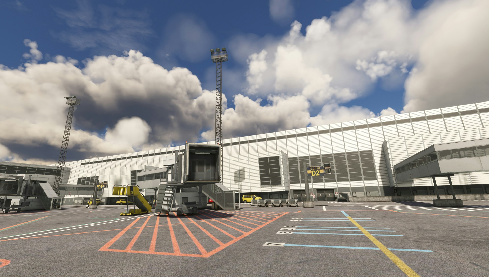 According to the developer, the scenery features custom-modelled and animated jetways, detailed building models, and custom aerial imagery for the airport area. SimNord also states that the scenery uses a custom-modelled projected mesh for the ground polygons.