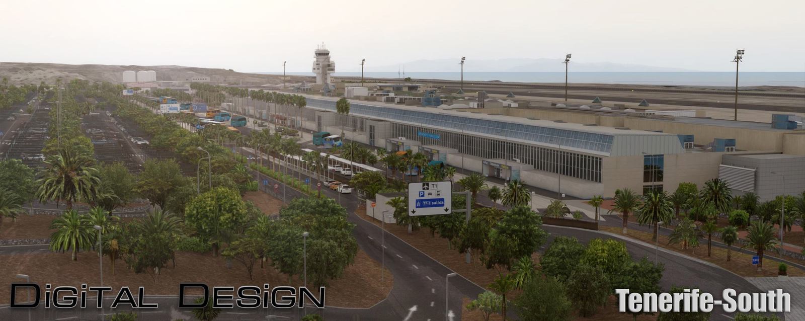Just before Christmas, developer Digital Design previewed the first shots of their rendition of Tenerife South. The canary island seems to be popular lately with MK-Studios releasing their version late last year, and Sim-Wings also confirming they’re developing their product (which is due out this month). In the mean time, Digital Designs has previewed a new shot of the scenery, this time showing the terminal building entrance and the detail they’re aiming to achieve.