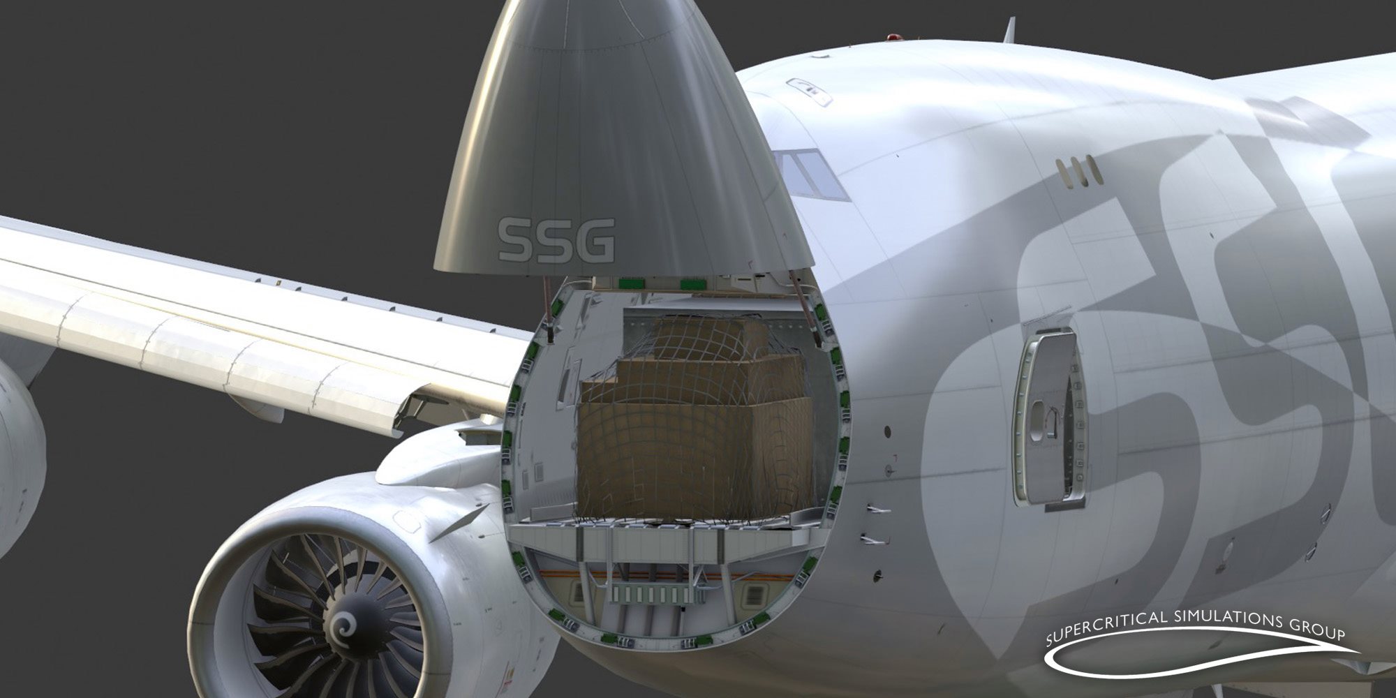 Supercritical Simulations Group (SSG) has shared a range of new previews for their upcoming 747-8 v2 Freighter over on Facebook. The new previews focus on mostly the internal modelling of the aircraft, with a few highlighting the external modelling. Some of the previews appear to be in-sim with others seemingly from the rendering and modelling software used.