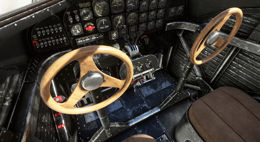 TukanFlightSim’s Trimotor features a detailed exterior and interior model with high quality textures for visual fidelity. The instruments are era-authentic, and include a classic radio for navigation and communication for the ultimate feeling of immersion.