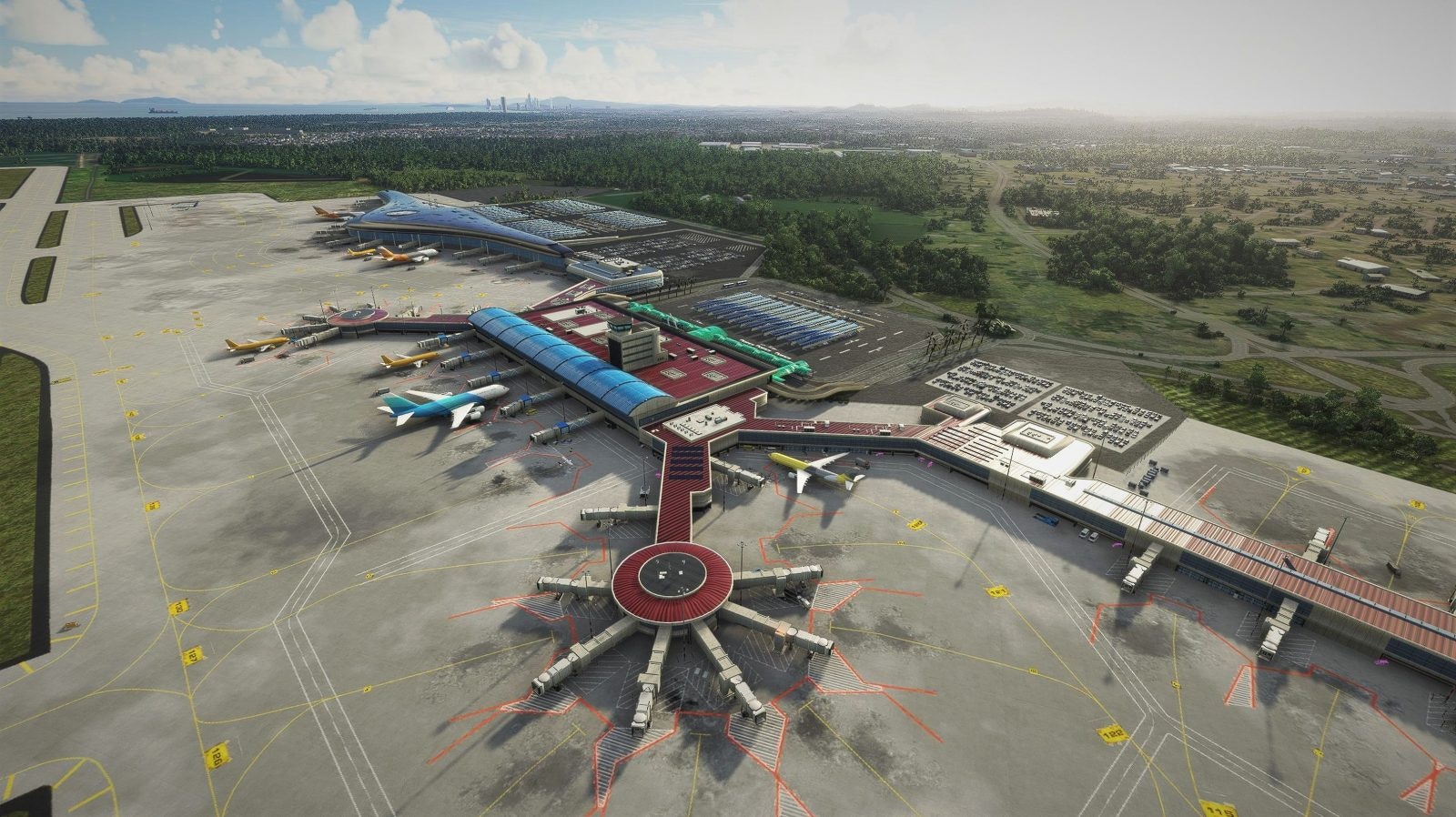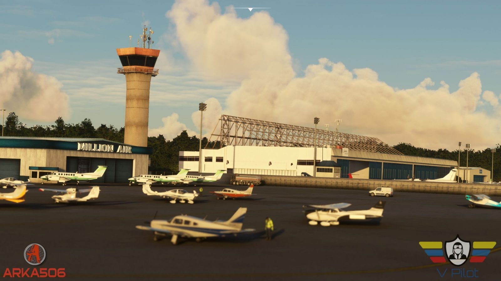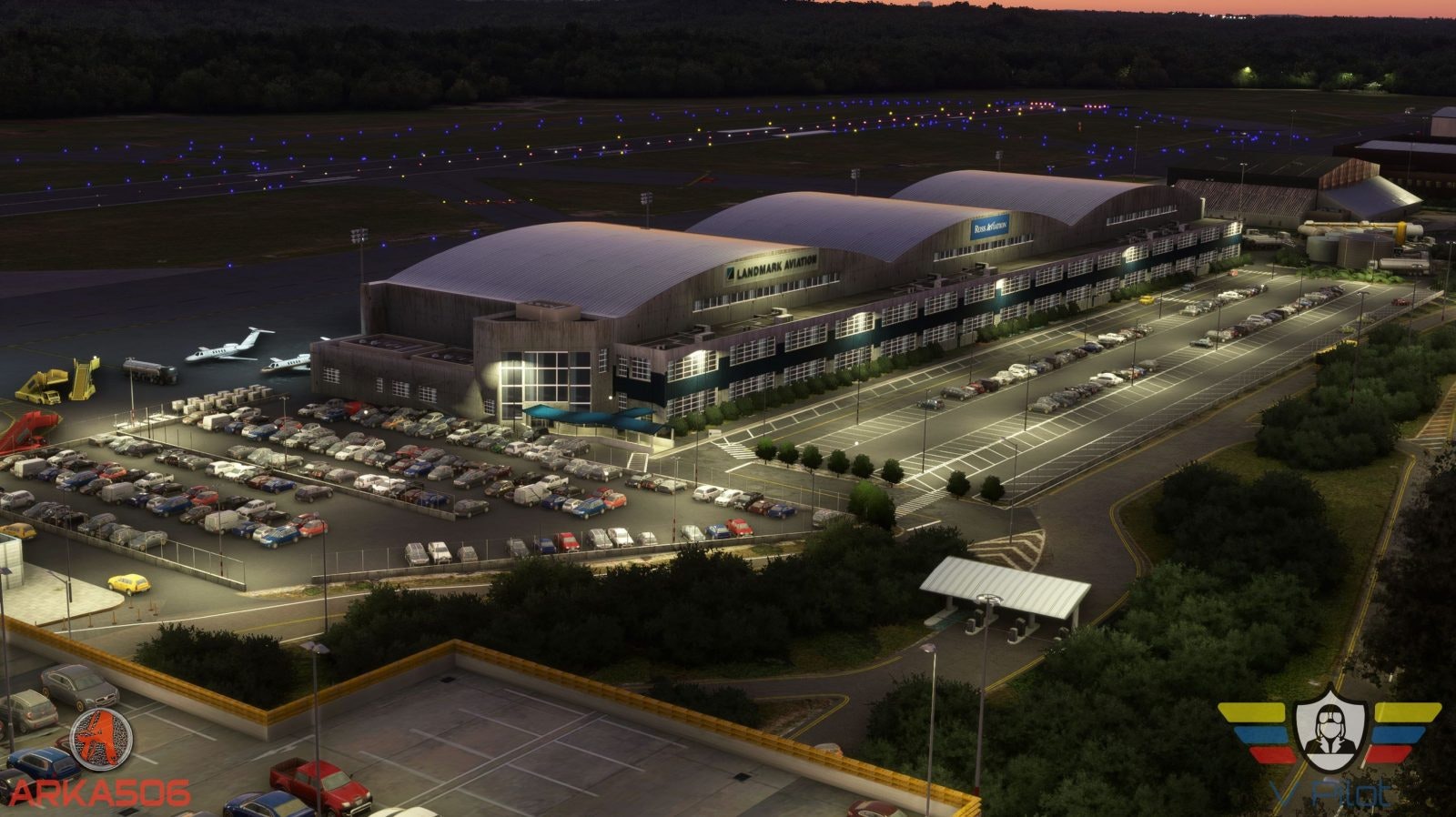 V Pilot Designs has recreated all buildings, terminals and hangars including parking garages, control tower, main terminal and the private aviation terminal of Million Air, Netjets, Flexjets and Signature Aviation.