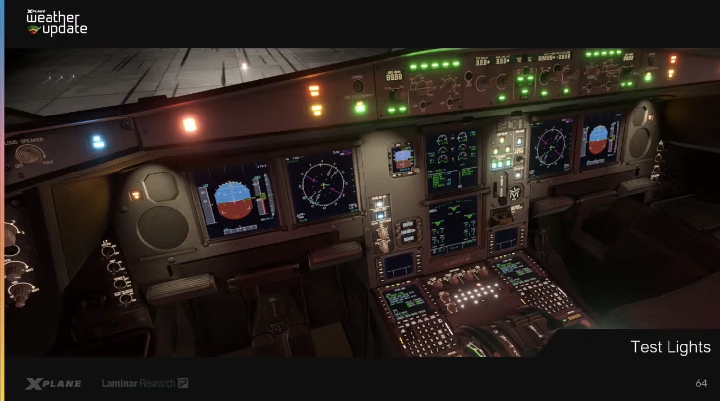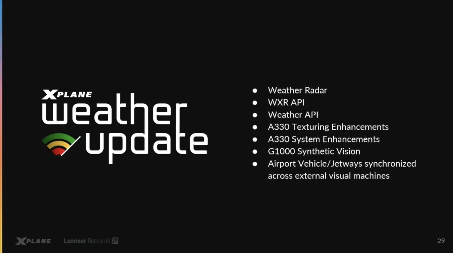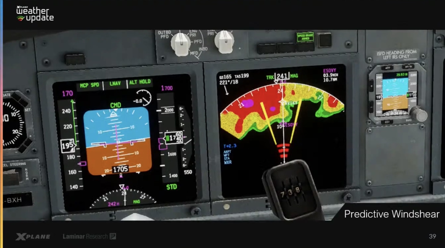 Next, the team moved onto the X-Plane weather update. This is bringing what the team described as “the most advanced weather radar ever shipped in a flight simulator” to the Airbus A330 and 737, among some other base-game X-Plane aircraft. The weather update is shipping with an API so that other third party developers can use it in their products, along with some texturing and system enhancements for the A330 and G1000.