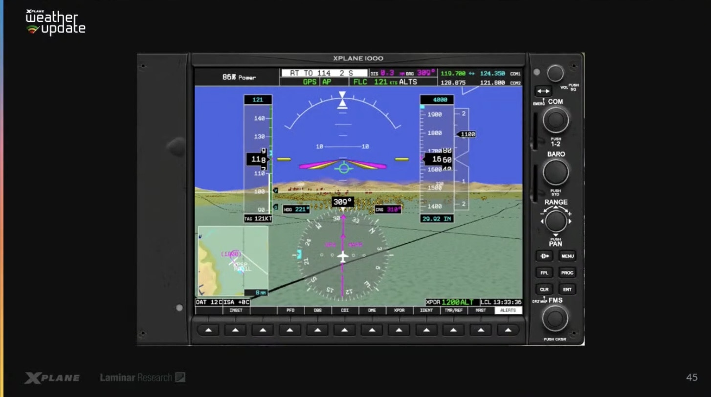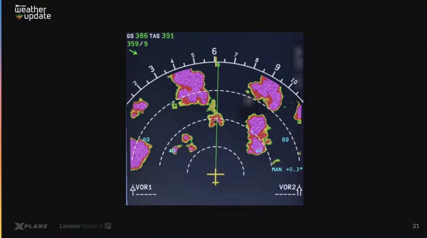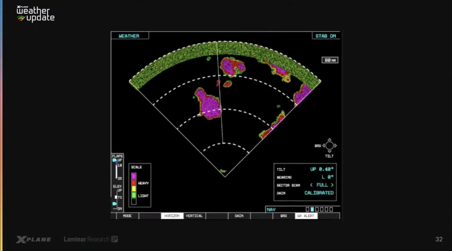 Next, the team moved onto the X-Plane weather update. This is bringing what the team described as “the most advanced weather radar ever shipped in a flight simulator” to the Airbus A330 and 737, among some other base-game X-Plane aircraft. The weather update is shipping with an API so that other third party developers can use it in their products, along with some texturing and system enhancements for the A330 and G1000.
